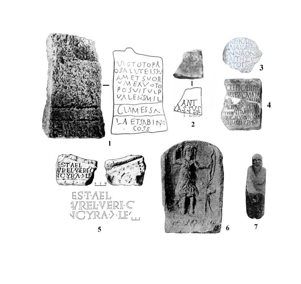 Limestone votive altar with an inscription (after Karyshkovskiy 1979, 82–86, Fig. 4); 2 – fragment of the marble votive slab with an inscription for the emperor’s health (after Karyshkovskiy 1979, 82–83, Fig. 3); 3 – fragment of marble votive slab with an inscription (after Samoylova/Kozhokaru 2002, 111, Fig. 4); 4 – marble slab with a dedicatory inscription to Asclepius and Hygieia from military doctors (after Karyshkovskiy 1987,52); 5 – fragment of a limestone pediment with a dedicatory inscription for the emperor’s health (after Son 1986, 60–61, Fig. 2); 6 – marble relief depicting Artemis (after Nicorescu 1924, Fig. 8); 7 – marble statuette of Priapus (after Nicorescu 1924, Fig. 7). © N/N// UAH Admin
