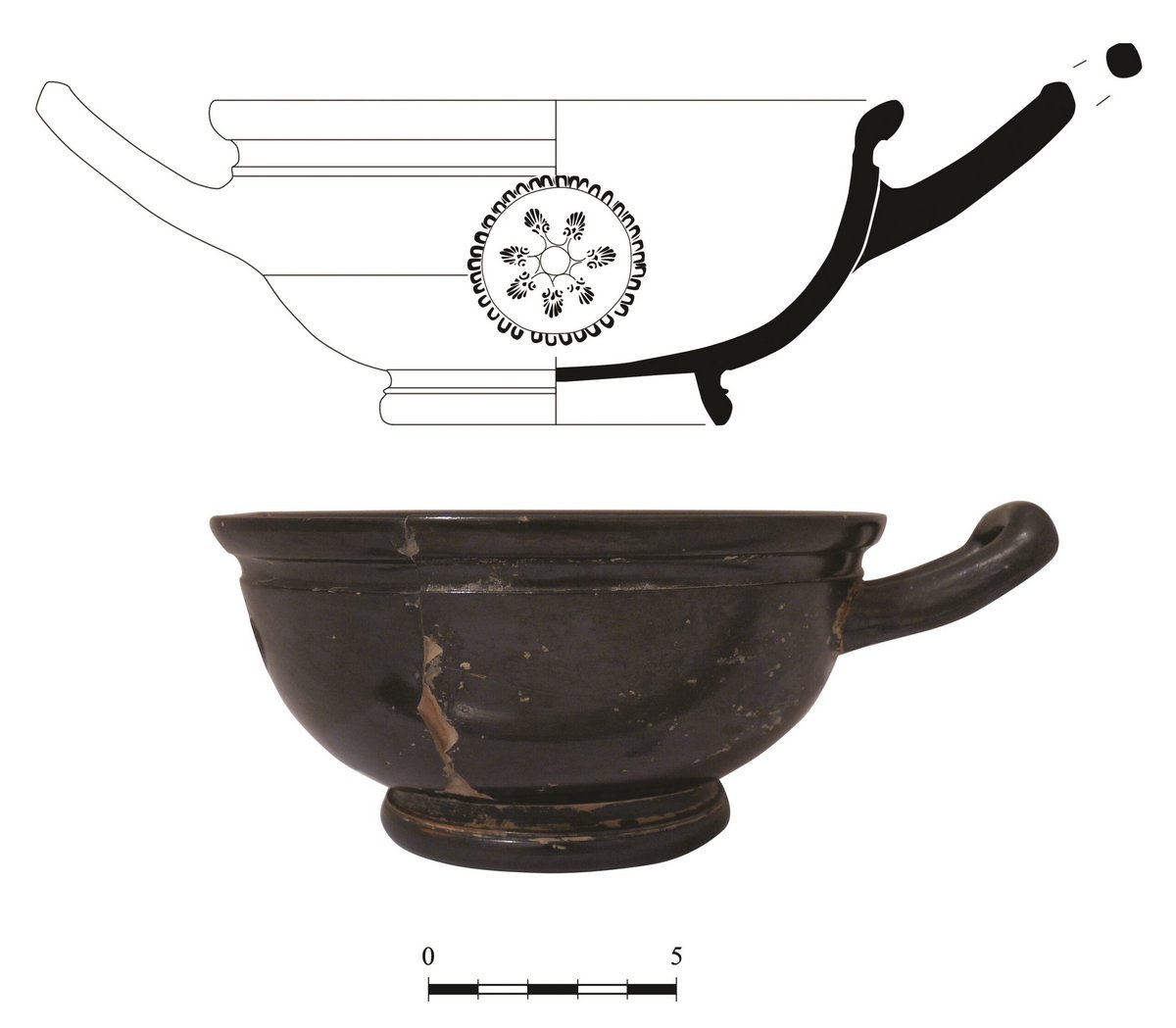 Attic black-glazed pottery (Figs. 2–4) is a distinctive style of ancient Greek ceramics that was produced in Athens from the 6th to the 4th century BC. It is characterized by its dark black glaze, delicate morphology and intricate stamped and incised ornaments. Attic black-glazed ware was highly valued in the ancient world and exported to many regions, including Italy, Egypt, and the Black Sea region.