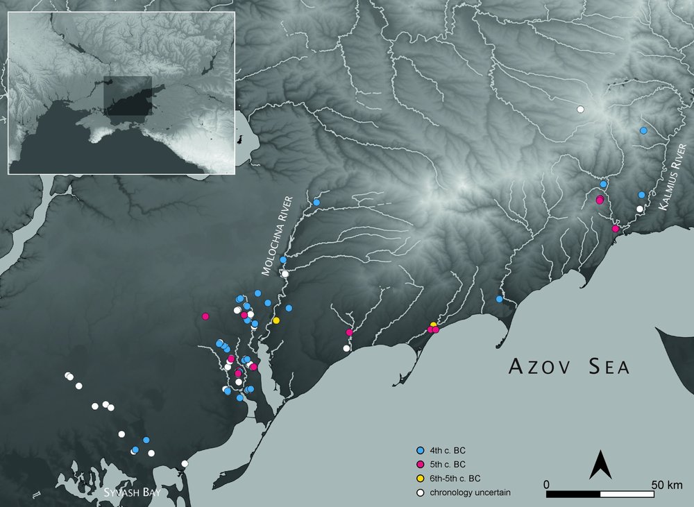 Map of Scythian time sites in Pryazovia © Alisa Demina// UAH Amin