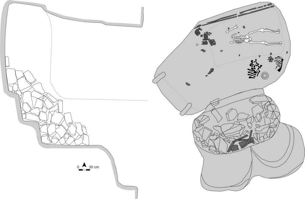 Plan and section of the burial in the barrow Shevchenko 3 © Alisa Demina after Moruzhenko et al. 1981// UAH Admin