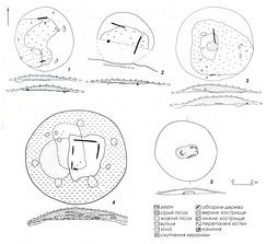 Raiky burials mounds with quadrangular structures: 1–3 – Mezhirichka (adapted from Rusanova 1959); 4 – Radasts (adapted from Rusanova 1969); 5 – Velyka Gorbasha (adapted from Rusanova 1961). © Rusanova // UAH Admin