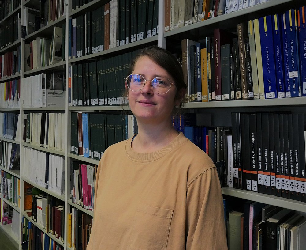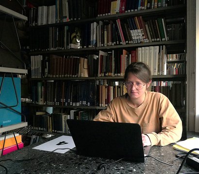 Dr. Céline Maicher working in the RGK library © DAI + RGK// Photo: Sina-Marie Hahn (RGK).