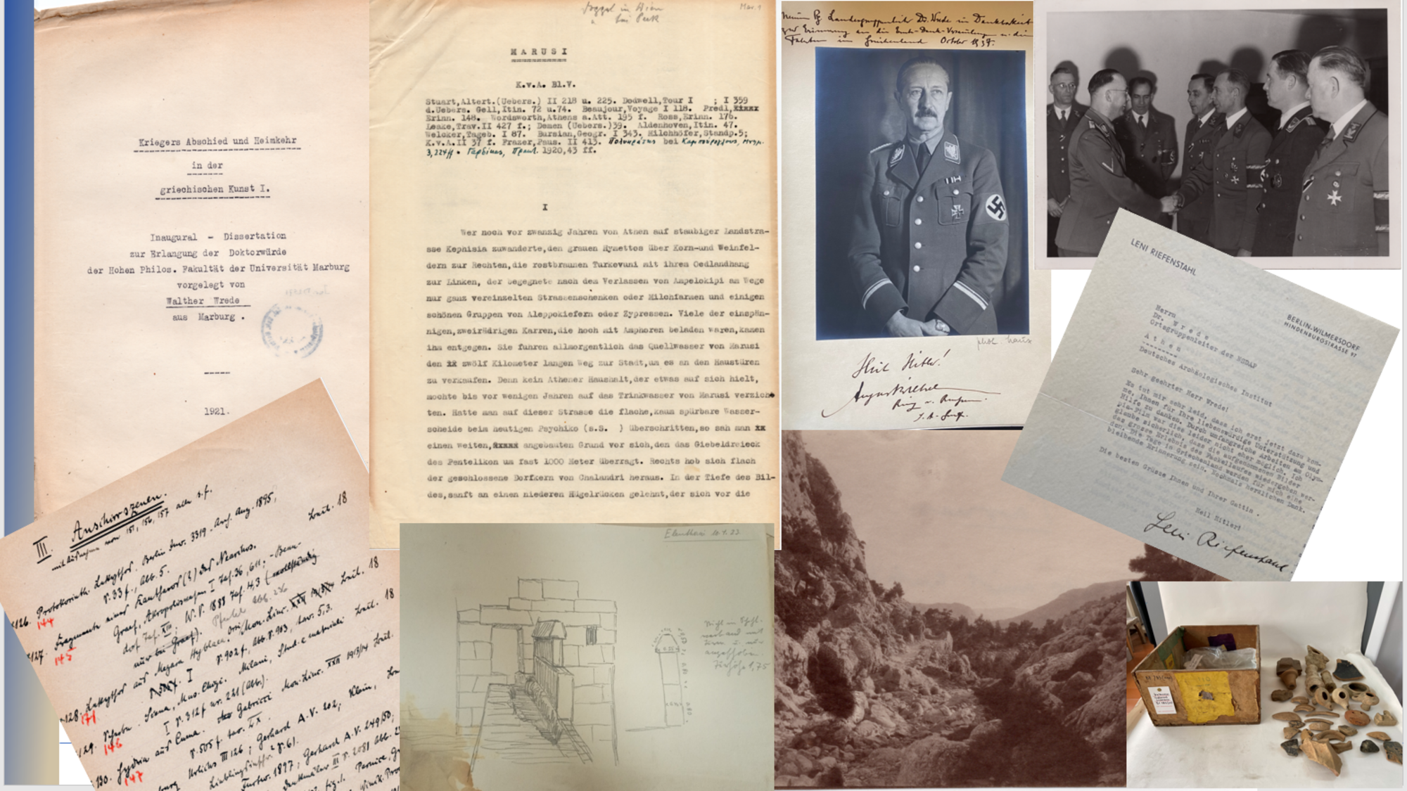 Schon bei der ersten Durchsicht zeigte sich, dass die Materialien aus zwei Beschlagnahmungen stammen: aus dem DAI selbst und aus dem Privathaus des damaligen Direktors Walther Wrede, der zugleich NSDAP-Landesgruppenleiter war. Während die antiken Objekte wohl größtenteils aus dem DAI stammen, sind die Archivalien mit Wredes privatem Umfeld verbunden. Insgesamt wurden 1000 Antiken (v.a. Scherben) sowie rund 200 Münzen (heute im Numismatischen Museum) verzeichnet. Hinzu kommen 342 Dokumente mit etwa 3200 Seiten und 401 Fotografien, die vollständig digitalisiert wurden. Das Archivgut umfasst vor allem Wredes archäologische Aufzeichnungen, Zeichnungen, Manuskripte (insbesondere zu seinen Forschungen in Attika) und private Korrespondenz, darunter Briefe mit NS-Funktionären, seine Taschenkalender von 1942/43 sowie Materialien des Schriftstellers Erhart Kästner. Diese Funde eröffnen neue Perspektiven auf die Geschichte des DAI in der Besatzungszeit und die Verflechtungen zwischen Wissenschaft und Politik jener Jahre.