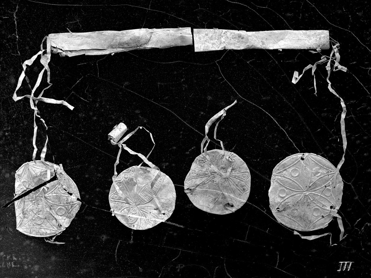 Fig. 8: Golden scales from shaft grave III in Mycenae. © D-DAI-ATH-Mykenai-Slg-Schliemann-0055.// Photographer unknown.