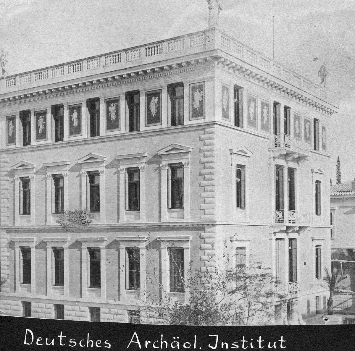 When the Department in Athens was founded in 1874, it originally had no premises of its own. Instead, it operated out of a rented building on Akadimias Street. The first three directors left this arrangement unchanged: they were far too busy with the basic task of establishing the Institute in Athens, setting up its library, holding meetings (e.g. for talks), giving tours in the city, and (of course) pursuing research and publishing it in the Institute’s new journal: Mitteilungen des Kaiserlichen Deutschen Archäologischen Instituts, Abteilung Athen. Schliemann, who already lived and worked in Athens for some decades, was elected a corresponding member of the Institute in 1877 and became an ordinary member in 1885. He was in regular contact with the associates of the Athens Department, as attested by numerous letters and invitations that are preserved today in the Schliemann Archive of the Gennadius Library of the ASCSA at Athens. Since Schliemann delivered several talks about his excavations (fig. 1) at the Institute between 1881 and 1889, he had firsthand knowledge of its local conditions.